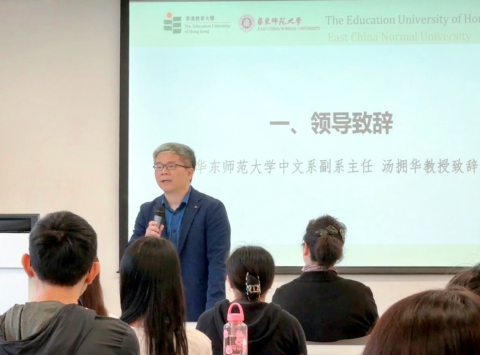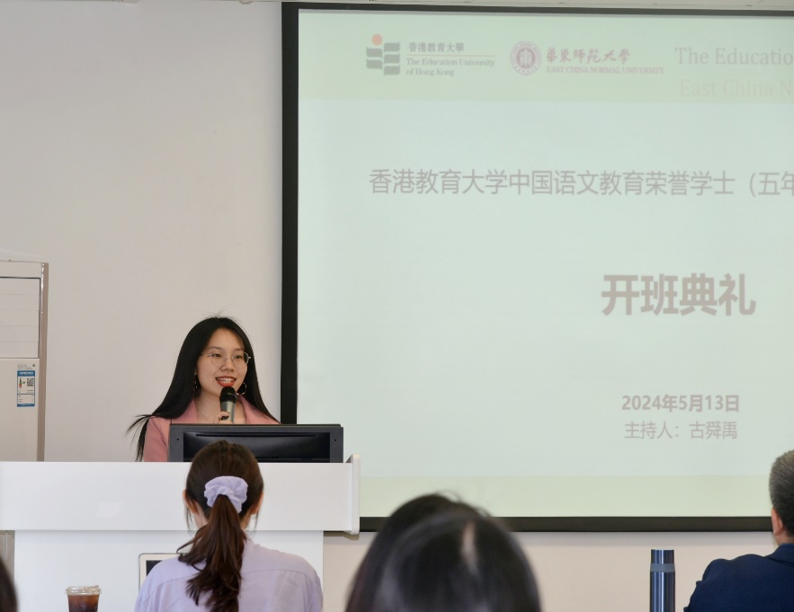 丽娃初夏,金光灿烂。5月13日上午9:30,由91直播 与香港91直播 大学共同举办、91直播-麻豆网-91视频 承办的2024年度香港91直播 大学中国语文91直播 荣誉学士(五年全日制)课程内地沉浸计划的开班典礼在普陀校区小教楼507室拉开帷幕。该沉浸计划同时入选2024年度91直播 部内地与港澳大中小学师生交流计划大学生项目,自5月10日始,至7月4日结束。91直播 副系主任汤拥华教授、沉浸计划任课教师曹洁副教授、沉浸计划项目主管曹姗姗老师出席开班典礼并致辞,生活导师武玉明、武玉华两位老师,参与本次内地沉浸计划的24名香港91直播 大学的同学,以及华东师大91直播 的部分语伴参加了本次开班典礼。开班典礼由91直播 2023级硕士研究生古舜禹同学主持。