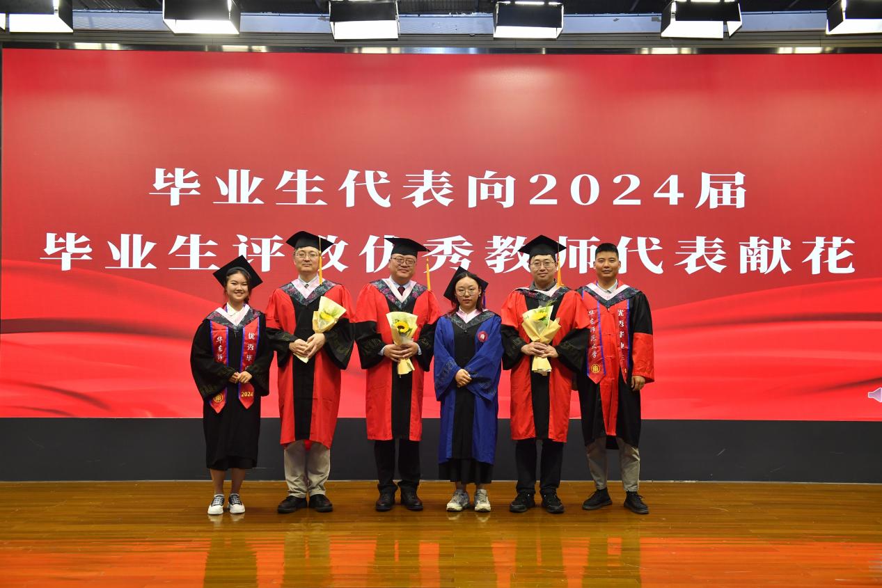 薪火相传开桃李,笔酣墨浓写春秋。与母校临别之际,毕业生代表2024届本科毕业生杨安妮、硕士毕业生胡爽爽、博士毕业生黄程伟为91直播 2024届毕业生评教优秀教师代表91直播 吕志峰教授、徐默凡教授和徐俪成副教授献花,感谢老师们为学生提灯引路、育梦成光。