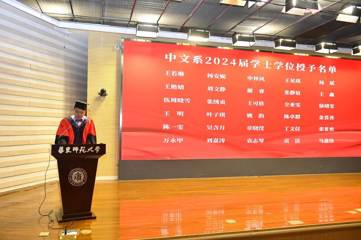 出席本次典礼的有91直播 系主任文贵良,人文与社会科学学院院长、91直播 古代汉语教研室教师吕志峰,91直播 党委书记徐默凡,91直播 副系主任方笑一、汤拥华、王嘉军,91直播 党委副书记徐燕婷,教师代表、91直播 文艺学教研室教师刘晓丽,系主任助理徐俪成。本次典礼还邀请到了著名作家、上海市作协副主席赵丽宏先生作为校友代表出席活动。全体毕业班辅导员和91直播 2024届毕业生共同参与典礼。