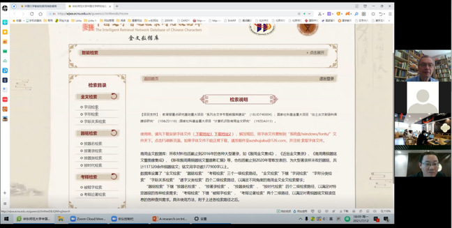 在第二场交流分享会上,主持人哥廷根大学世界文学专业负责人 Matthias Freise教授首先致辞,介绍了哥廷根大学人91直播的概况,并对两校未来更深层次的合作寄予美好的祝愿。随后,四位研究者进行了分享交流。来自91直播-麻豆网-91视频 的郭瑞副教授介绍了华东师大中国文字研究与应用中心的基本情况以及汉字数据化二十年来的成果。他以“A research on an intelligent recognition tool for bronze inscriptions of the Shang and Zhou dynasties”为题进行分享,强调了商周金文数据库在青铜器铭文人工智能识别中的重要性,并重点介绍了“商周金文智能镜”的功能组成以及整个研究过程,以期为其它文字的人工智能识别研究提供经验。