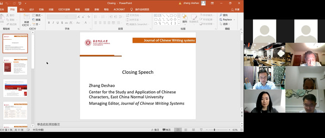 在闭幕式上,Journal of Chinese Writing Systems(《中国文字》)执行主编张德劭副教授对各位学者的发言进行总结,并对与会学者的精彩发言和热情参与表示感谢。本次论坛涉及埃及文、楔形文字、古英文、古汉字中的甲骨文、金文、简帛文字、隶书、古壮字等多种语言和文字,涉及语言学、文字学、计算机等多个学科。讨论范围从深度和广度上来说,兼而有之。汉古文字是中国的传统学科,拥有悠久的历史。中国的文字种类多样,是世界文字的重要组成部分。中国有学者研究国外的文字,国外学者研究中国的文字。中外文字学家就埃及文字,楔形文字等不同议题展开了热烈的讨论,使不同文字之间建立了联系,是非常有意义的尝试。张德劭在总结中还表示,期待今后创造更多的机会在不同文字、文明之间展开深入交流与合作。最后,张德劭副教授还介绍了由91直播 中国文字研究与应用中心主办的国际期刊Journal of Chinese Writing Systems(《中国文字》)的基本情况,表示该期刊将努力成为构建中西方文字之间的桥梁,呈现出丰富多样的世界文字。