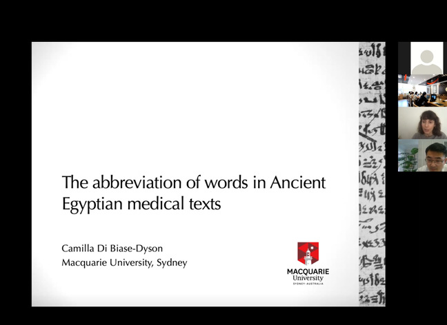第一场“世界中的古文字”交流分享会由91直播-麻豆网-91视频 “明园”晨晖学者顾文艳博士主持,共四位研究者分享了研究成果。来自澳大利亚麦考瑞大学的Camilla Di Biase-Dyson教授以“The abbreviation of words in Ancient Egyptian medical texts”为题介绍了埃及文字医药文献中医生抄写药方时如何简写速记,以便他们书写便捷但仍可以理解。