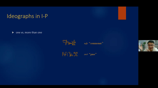 来自中国海洋大学的陈永生副教授以“The Ideograph+phonograph Compounds in Egyptian and Chinese Writing”为题进行分享,并表示形声结构是汉古文字和埃及文字常见的现象,两种文字之间有很多相似性。