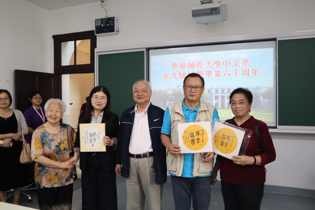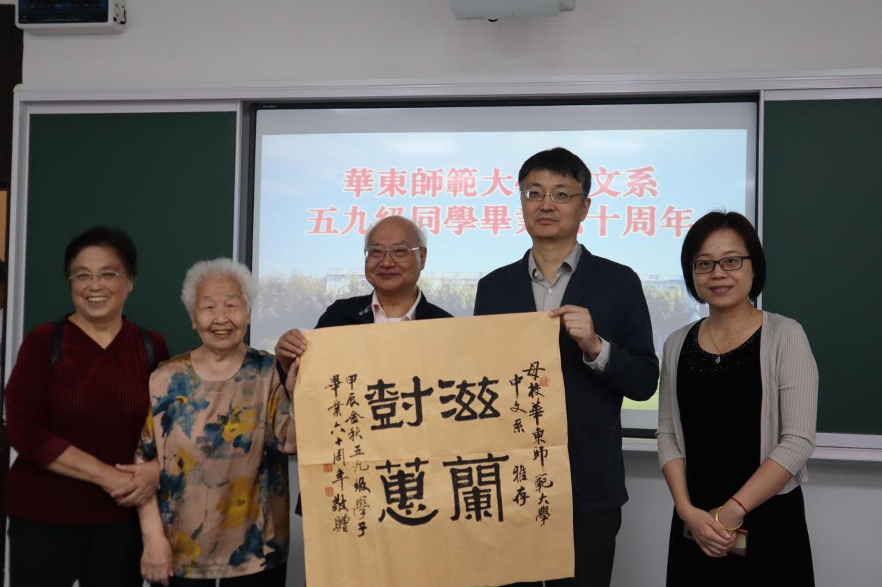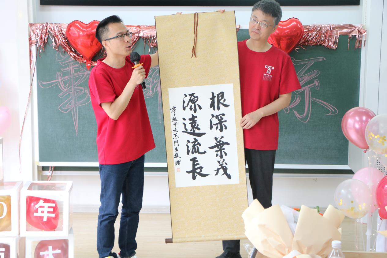 最后,2004届系友们共同为母系赠送了一幅书法作品,徐默凡老师代表91直播 接受了这份珍贵的礼物,并希望系友们在未来的道路上不断砥砺前行,共同见证彼此的成长与辉煌,并与母校和母系保持紧密的联系。