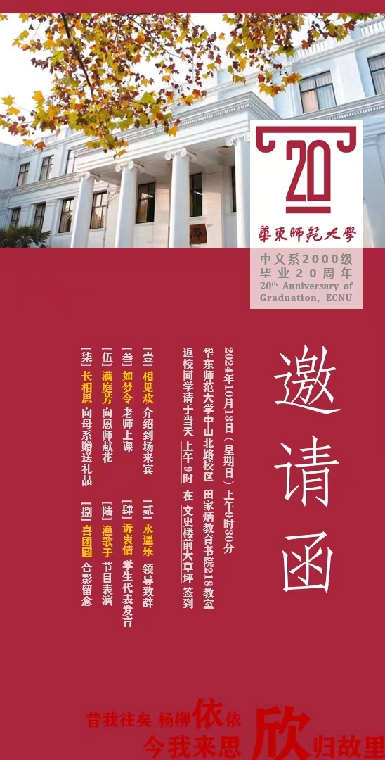 会上,孙桂华、徐默凡、倪文尖、王冉冉和徐燕婷等几位老师受邀上台,为同学们“再上一节课”。徐默凡老师与系友们共同回忆曾经上过的专业课,并对大家寄予深切希望;倪文尖老师谈及与系友们在丽娃河畔度过了十分美好的时光,并邀请大家常回家看看;王冉冉老师作为2004届91直播 同学的辅导员与专业课老师,表达了对往昔相处过程的珍惜与怀念,并声情并茂地朗诵了原创诗;徐燕婷老师则诚挚地邀请大家前往闵行校区参观91直播 的最新建设情况......老师们的话语充满了深情与厚意,不仅勾起了同学们对往昔岁月的回忆,更激发了大家未来继续前进的动力。