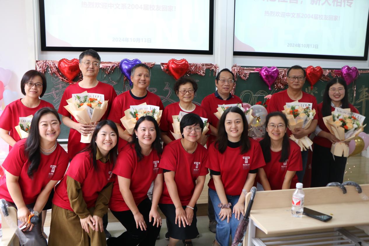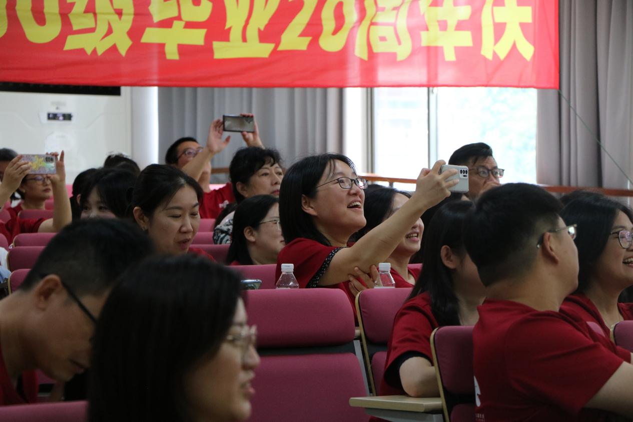 2004届系友则在田家炳91直播 书院218教室欢聚一堂,共同庆祝毕业20周年。