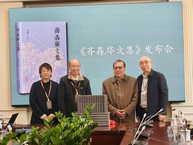 随后,复旦大学91直播 教授黄霖、上海戏剧学院戏文系教授叶长海、韬奋基金会副理事长阚宁辉、上海古籍出版社总编奚彤云共同为《齐森华文集》揭幕。