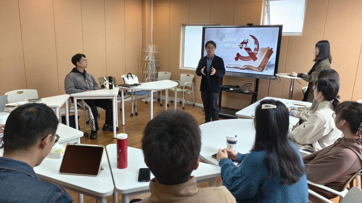 座谈会上,两支部围绕学生党建工作深入交流,分别介绍了各自党支部的特色实践。华东师大91直播 2024级博士研究生党支部书记田丽媛详细阐述了支部的组织架构与特色活动;李昕颐着重介绍了支部精心打造的“世界读书日”主题品牌活动。交流中,两校博士生围绕求学经历、91直播 兴趣等话题深入研讨,氛围热烈融洽、思想碰撞频繁。